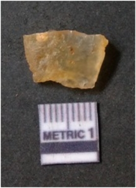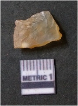 | Description / विवरण | It is chalcedony flake, translucent in appearance. The piece shows sharp pointed ends and flake scars on the surface as a result of flaking. The piece shows a bulb of percussion. |