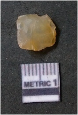 | Description / विवरण | It is chalcedony flake, translucent in appearance. The piece shows sharp pointed ends and flake scars on the surface as a result of flaking. The piece shows a bulb of percussion. |