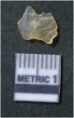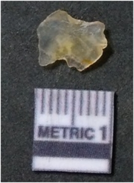 | Description / विवरण | It is chalcedony flake, translucent in appearance. The piece shows sharp pointed ends and flake scars on the surface as a result of flaking. The piece shows a bulb of percussion. |