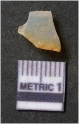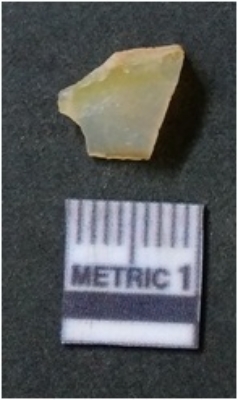 | Description / विवरण | It is chalcedony flake, translucent in appearance. The piece shows sharp pointed ends and flake scars on the surface as a result of flaking. The piece shows a bulb of percussion. |