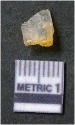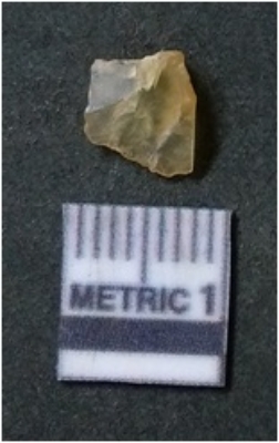 | Description / विवरण | It is chalcedony flake, translucent in appearance. The piece shows sharp pointed ends and flake scars on the surface as a result of flaking. The piece shows a bulb of percussion. |