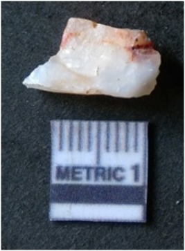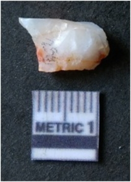 | Description / विवरण | The banded agate piece is crystalline in nature, with a smooth fracture pattern and visible bands on the flaked sides. The piece is pale in color and has sharp flaked ends. |