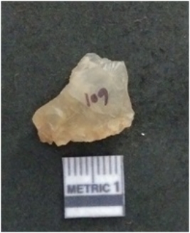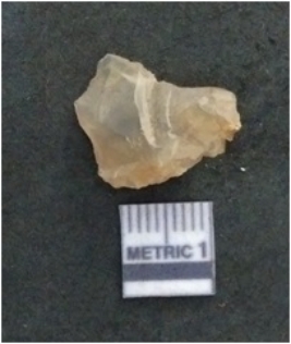 | Description / विवरण | The chalcedony flake is pale in color and translucent in appearance. The piece has s harp flaked ends and a bulbous end due to flaking. The flake has a crypto-crystalline silica matrix. |
