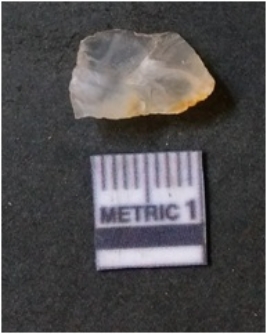 | Description / विवरण | It is chalcedony flake, translucent in appearance. The piece shows sharp pointed ends and flake scars on the surface as a result of flaking. The piece shows a bulb of percussion. |