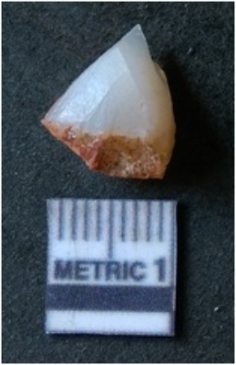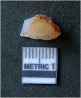 | Description / विवरण | It is chalcedony flake, translucent in appearance. The piece shows sharp pointed ends and flake scars on the surface as a result of flaking. The piece shows a bulb of percussion. |