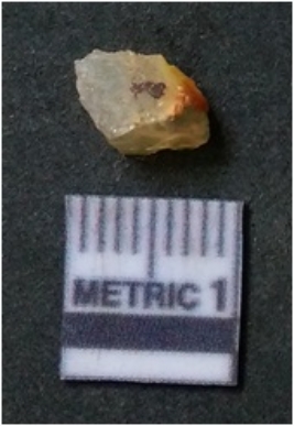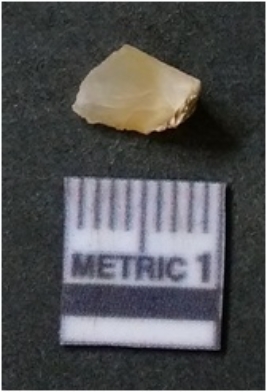 | Description / विवरण | It is chalcedony flake, translucent in appearance. The piece shows sharp pointed ends and flake scars on the surface as a result of flaking. The piece shows a bulb of percussion. |