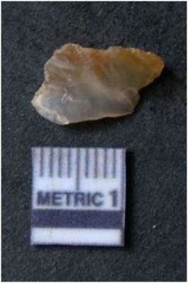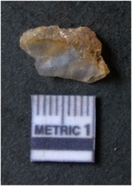 | Description / विवरण | It is chalcedony flake, translucent in appearance. The piece shows sharp pointed ends and flake scars on the surface as a result of flaking. The piece shows a bulb of percussion. |