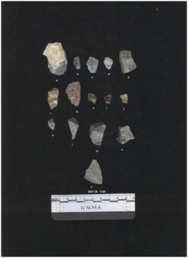 | Description / विवरण | It is a chalcedony flake, with a bulb of percussion on the ventral side. Ridges on the surface. |