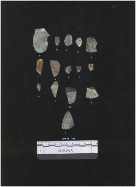 | Description / विवरण | It is a chalcedony flake, with a bulb of percussion on the ventral side. Ridges on the surface. |