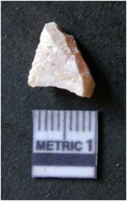 | Description / विवरण | It is chalcedony flake, translucent in appearance. The piece shows sharp pointed ends and flake scars on the surface as a result of flaking. The piece shows a bulb of percussion. |