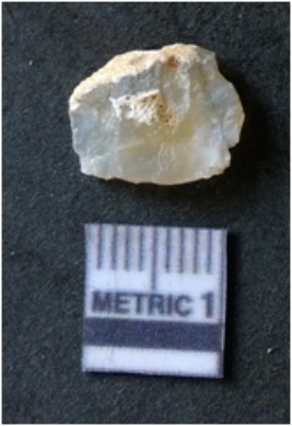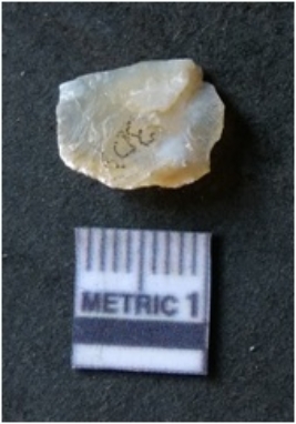 | Description / विवरण | It is chalcedony flake, translucent in appearance. The piece shows sharp pointed ends and flake scars on the surface as a result of flaking. The piece shows a bulb of percussion. |