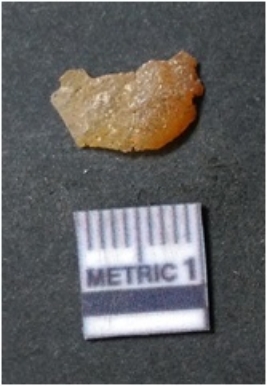 | Description / विवरण | It is chalcedony flake, translucent in appearance. The piece shows sharp pointed ends and flake scars on the surface as a result of flaking. The piece shows a bulb of percussion. |