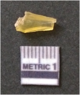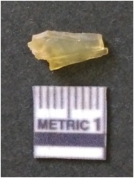 | Description / विवरण | The chalcedony flake is pale in color and translucent in appearance. The piece has s harp flaked ends and a bulbous end due to flaking. The flake has a crypto-crystalline silica matrix. |