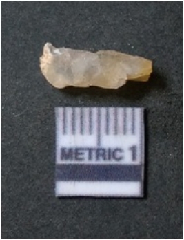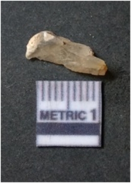 | Description / विवरण | The quartz flake has sharp flaked edges and pointed ends as a result of flaking. The piece is semi-transparent in nature with irregular fracture pattern. The piece is roughly triangular in shape and has a prominent bulb of percussion. |