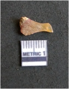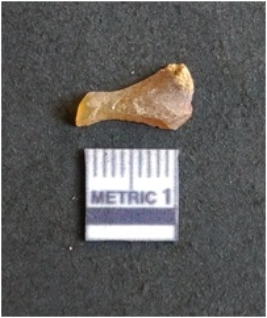 | Description / विवरण | The chalcedony flake is pale in color and translucent in appearance. The piece has s harp flaked ends and a bulbous end due to flaking. The flake has a crypto-crystalline silica matrix. |