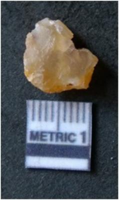 | Description / विवरण | The jasper fragment has sharp flaked edges and a bulb of percussion. The piece is dark in color and has crypto crystalline matrix. Flake scars are visible on the surface and bulb of percussion is present as a result of lithic knapping activity. |