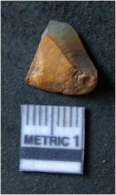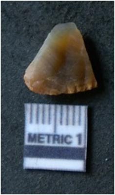 | Description / विवरण | It is chalcedony flake, translucent in appearance. The piece shows sharp pointed ends and flake scars on the surface as a result of flaking. The piece shows a bulb of percussion. |