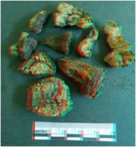 | Description / विवरण | Nine pieces of iron. Rusted piece dark in color and some piece with heavy encrustations. No defined shape group of broken fragment. |