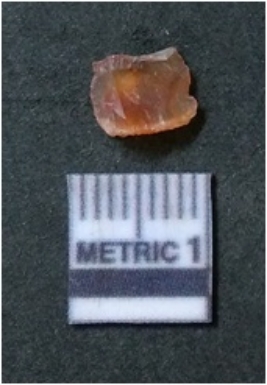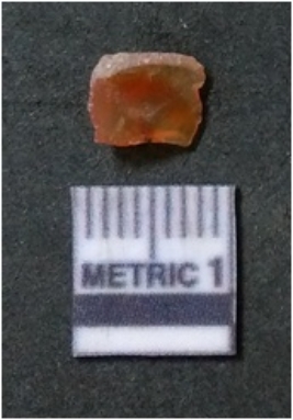 | Description / विवरण | It is carnelian flake red in color, with sharp flakes edges and a small bulb of percussion owing to knapping activity. The piece has sharp flaked edges and a crypto-crystalline matrix. |