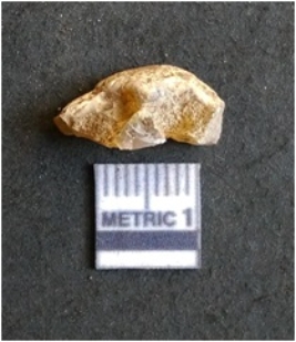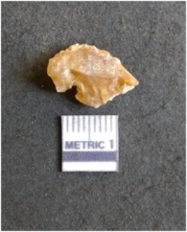 | Description / विवरण | The chalcedony flake is pale in color and translucent in appearance. The piece has s harp flaked ends and a bulbous end due to flaking. The flake has a crypto-crystalline silica matrix. |