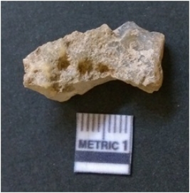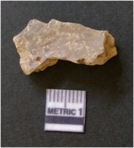 | Description / विवरण | It is chalcedony flake, translucent in appearance. The piece shows sharp pointed ends and flake scars on the surface as a result of flaking. The piece shows a bulb of percussion. |