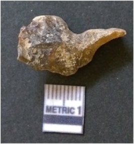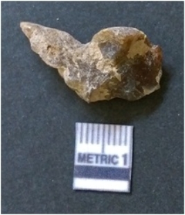| Description / विवरण | It is chalcedony flake, translucent in appearance. The piece shows sharp pointed ends and flake scars on the surface as a result of flaking. The piece shows a bulb of percussion. |