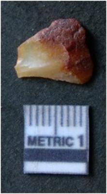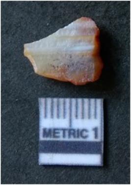 | Description / विवरण | The banded agate piece is crystalline in nature, with a smooth fracture pattern and visible bands on the flaked sides. The piece is pale in color and has sharp flaked ends. |