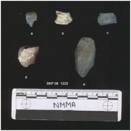 | Description / विवरण | It is a chalcedony flake, with a bulb of percussion on the ventral side. Cortex on one end. |