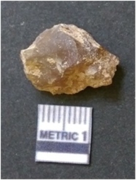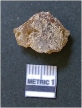 | Description / विवरण | It is chalcedony flake, translucent in appearance. The piece shows sharp pointed ends and flake scars on the surface as a result of flaking. The piece shows a bulb of percussion. |