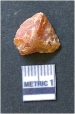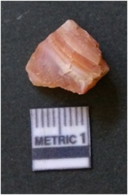 | Description / विवरण | The banded agate piece is crystalline in nature, with a smooth fracture pattern and visible bands on the flaked sides. The piece is pale in color and has sharp flaked ends. |