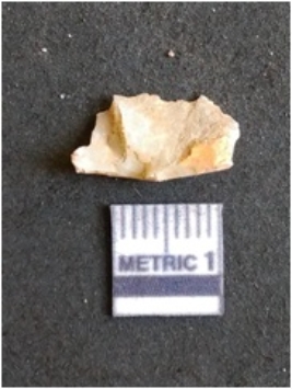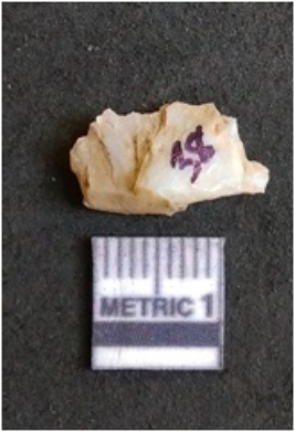 | Description / विवरण | The quartz flake is glassy, and transparent. The flake has irregular fracture pattern and sharp flaked edges as a result of lithic knapping activity. The piece is pale, with surface flake scars and a bulbous end. |
