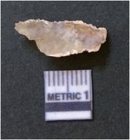 | Description / विवरण | The quartz flake has sharp flaked edges and pointed ends as a result of flaking. The piece is semi-transparent in nature with irregular fracture pattern. The piece is roughly triangular in shape and has a prominent bulb of percussion. |