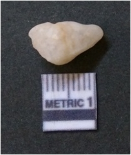 | Description / विवरण | The milky quartz flake has irregular fracture pattern and sharp flaked edges as a result of lithic knapping activity. The piece is pale, with surfacial flake scars and a bulbous end. The flake is white in color. |