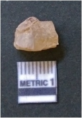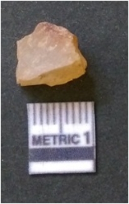 | Description / विवरण | It is chalcedony flake, translucent in appearance. The piece shows sharp pointed ends and flake scars on the surface as a result of flaking. The piece shows a bulb of percussion. |
