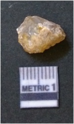 | Description / विवरण | It is chalcedony flake, translucent in appearance. The piece shows sharp pointed ends and flake scars on the surface as a result of flaking. The piece shows a bulb of percussion. |