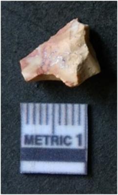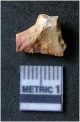| Description / विवरण | The chert piece is dark in color, with a prominent bulb of percussion and sharp flaked edges. The piece is a part of lithic debitage or raw material for lithic knapping. The piece shows clear ripple marks and bulb of percussion. |
