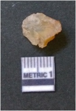 | Description / विवरण | It is chalcedony flake, translucent in appearance. The piece shows sharp pointed ends and flake scars on the surface as a result of flaking. The piece shows a bulb of percussion. |