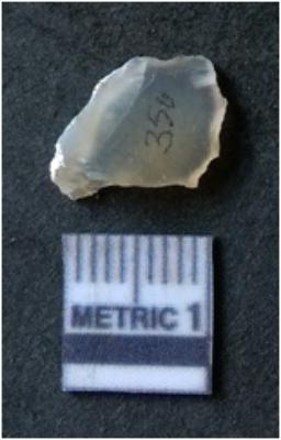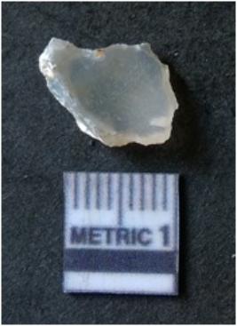 | Description / विवरण | It is chalcedony flake, translucent in appearance. The piece shows sharp pointed ends and flake scars on the surface as a result of flaking. The piece shows a bulb of percussion. |