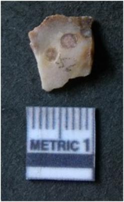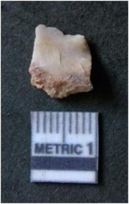 | Description / विवरण | The chert piece is dark in color, with a prominent bulb of percussion and sharp flaked edges. The piece is a part of lithic debitage or raw material for lithic knapping. The piece shows clear ripple marks and bulb of percussion. |