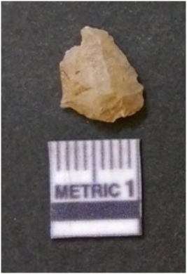 | Description / विवरण | It is chalcedony flake, translucent in appearance. The piece shows sharp pointed ends and flake scars on the surface as a result of flaking. The piece shows a bulb of percussion. |