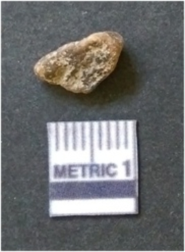| Description / विवरण | The chert piece is dark in color, with a prominent bulb of percussion and sharp flaked edges. The piece is a part of lithic debitage or raw material for lithic knapping. The piece shows clear ripple marks and bulb of percussion. |