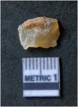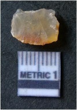 | Description / विवरण | It is chalcedony flake, translucent in appearance. The piece shows sharp pointed ends and flake scars on the surface as a result of flaking. The piece shows a bulb of percussion. |