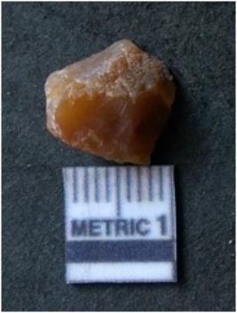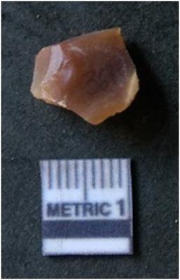 | Description / विवरण | The jasper fragment has sharp flaked edges and a bulb of percussion. The piece is dark in color and has crypto crystalline matrix. Flake scars are visible on the surface and bulb of percussion is present as a result of lithic knapping activity. |