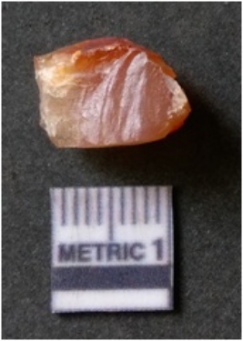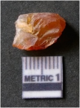 | Description / विवरण | It is carnelian flake red in color, with sharp flakes edges and a small bulb of percussion owing to knapping activity. The piece has sharp flaked edges and a crypto-crystalline matrix. |
