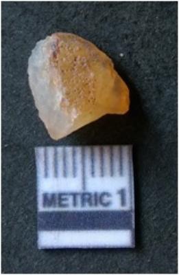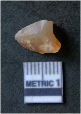 | Description / विवरण | It is chalcedony flake, translucent in appearance. The piece shows sharp pointed ends and flake scars on the surface as a result of flaking. The piece shows a bulb of percussion. |