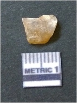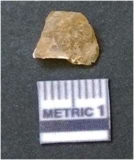 | Description / विवरण | It is chalcedony flake, translucent in appearance. The piece shows sharp pointed ends and flake scars on the surface as a result of flaking. The piece shows a bulb of percussion. |