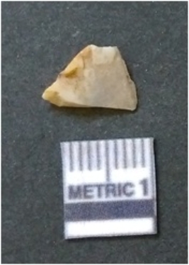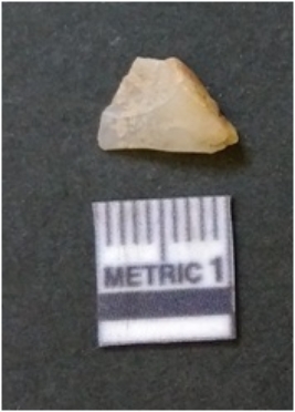 | Description / विवरण | It is chalcedony flake, translucent in appearance. The piece shows sharp pointed ends and flake scars on the surface as a result of flaking. The piece shows a bulb of percussion. |