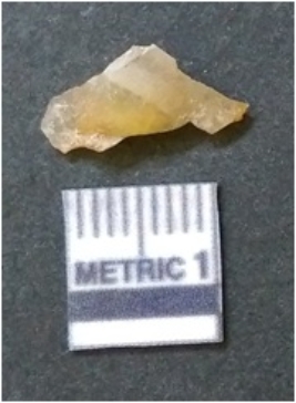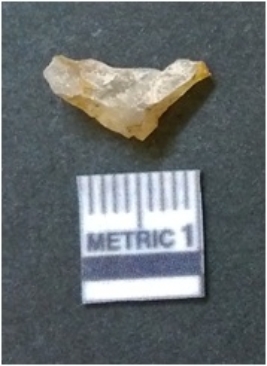 | Description / विवरण | It is chalcedony flake, translucent in appearance. The piece shows sharp pointed ends and flake scars on the surface as a result of flaking. The piece shows a bulb of percussion. |