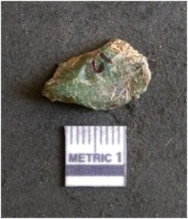 | Description / विवरण | The chert flake has a clear striking platform and ripple marks on the surface as a result of flaking. The piece is smooth, with regular fracture pattern and matt finish on the surface with a prominent bulb of percussion nd sharp flaked edges. |