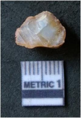 | Description / विवरण | It is chalcedony flake, translucent in appearance. The piece shows sharp pointed ends and flake scars on the surface as a result of flaking. The piece shows a bulb of percussion. |